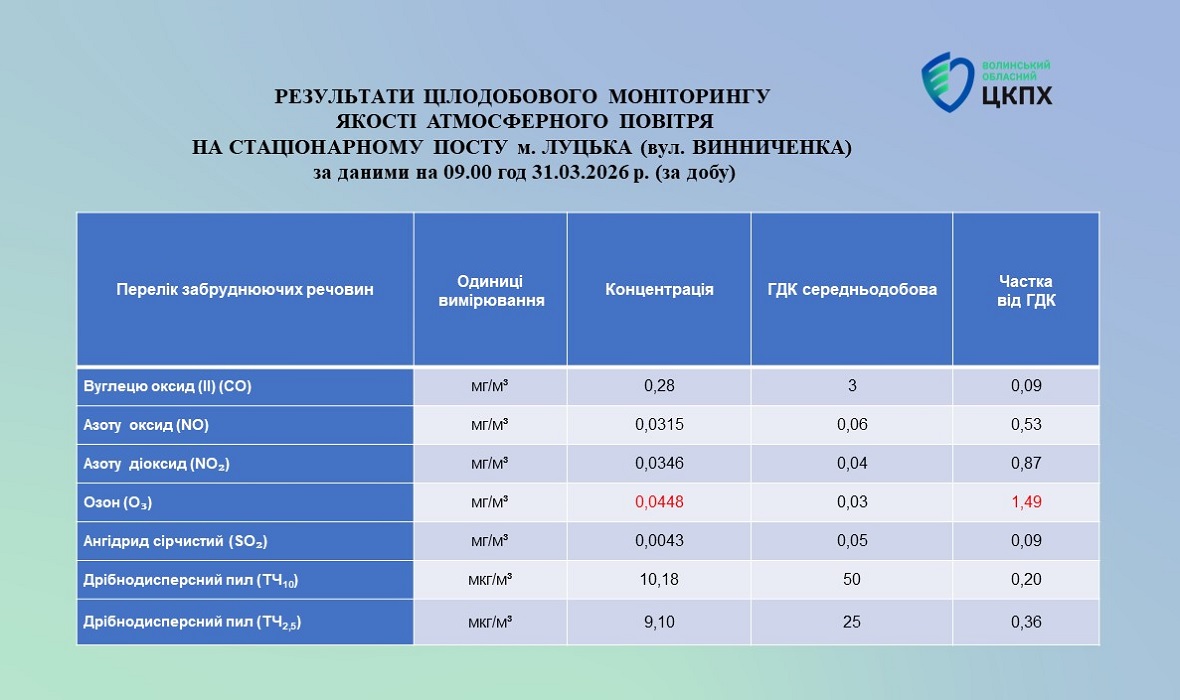 Результати цілодобового моніторингу якості атмосферного повітря