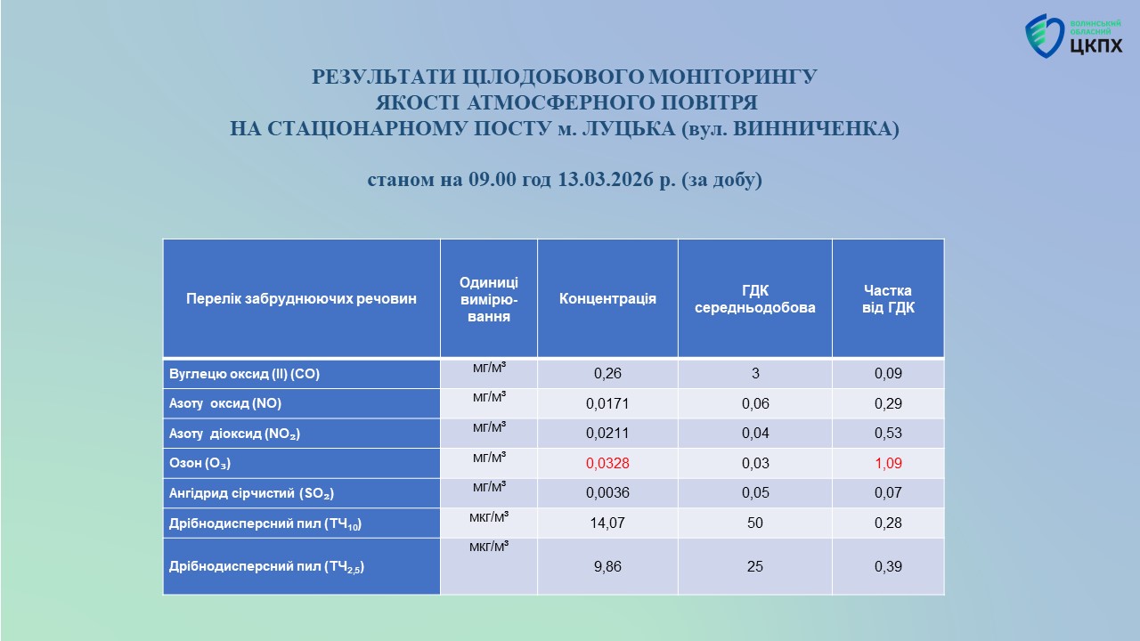 Результати цілодобового моніторингу якості атмосферного повітря