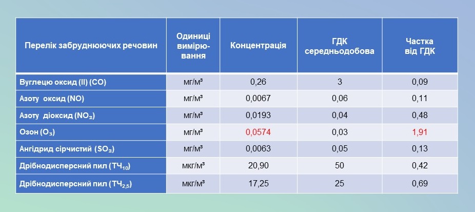 Результати цілодобового моніторингу якості атмосферного повітря