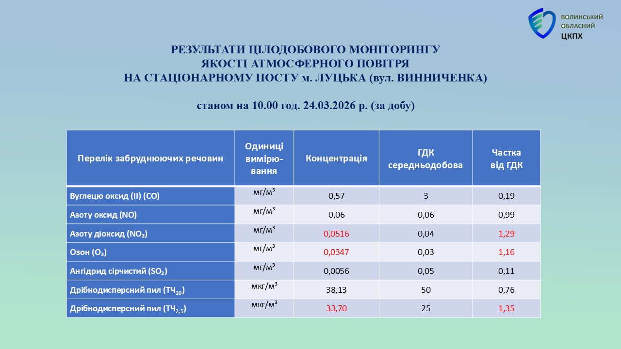 Результати цілодобового моніторингу якості атмосферного повітря