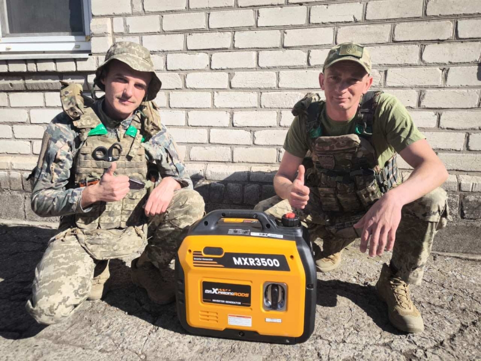 Так, для нашого працівника Гринішина Андрія нам вдалося придбати генератор MXR3500, квадрокоптер DJI MAVIK 3 Fly MORE COMBO та допомогти зі спорядженням.