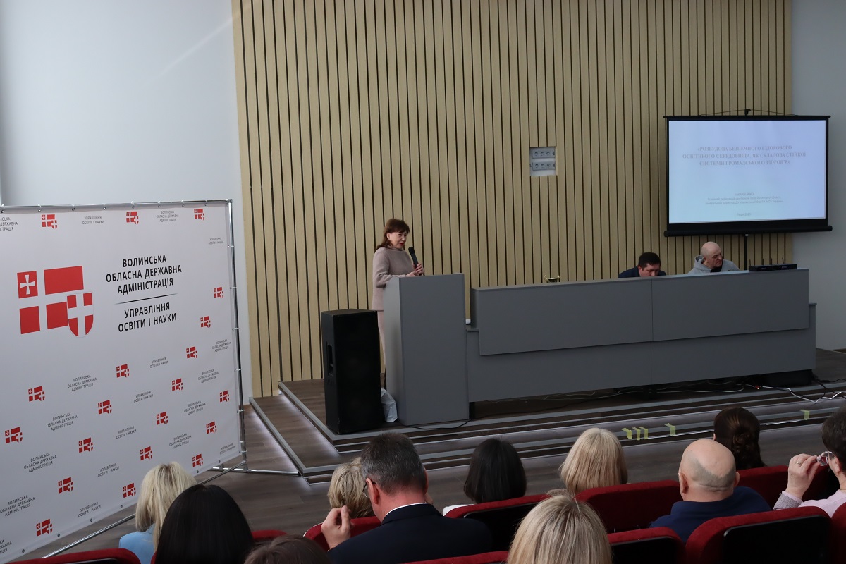 Із доповіддю «Розбудова безпечного і здорового освітнього середовища, як складова стійкої системи громадського здоров’я» виступила Головний державний санітарний лікар Волині Наталія Янко.