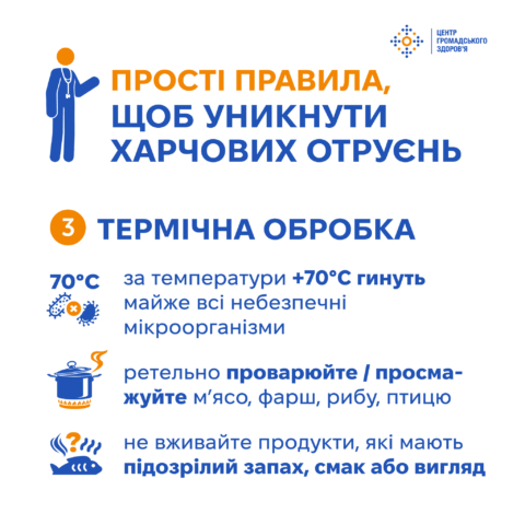 Якщо з’явилися симптоми харчового отруєння — нудота, блювання, діарея, підвищена температура — негайно звертайтесь до сімейного лікаря, педіатра або інфекціоніста!