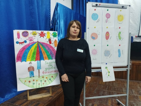 Фахівці Нововолинського відділення Центру разом з “Нововолинський ПМСД” та філією “Міський клуб” провели просвітницький захід “Імунітет проти мікробів” для школярів 4-х класів Нововолинського ліцею №7 . Наші спеціалісти показали відеоролик “Мікроби. Віруси. Бактерії” про мікроорганізми, які викликають інфекційні захворювання, а також розповіли про вакцинацію та навіщо вона потрібна. В рамках заходу провели майстер-клас з гігієни рук. Нові знання діти закріпили у грі-вікторині. А ще, до них завітав справжній «Мікробик», з яким можна було сфотографуватися та поговорити чому він може бути небезпечним для людей.