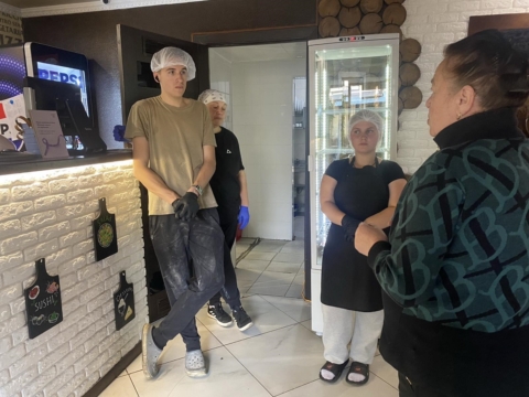 У Любомлі колеги з місцевого відділення Центру спілкувалися з працівниками піцерії «Тарантелла» й закріпили з ними навички правильного миття рук.