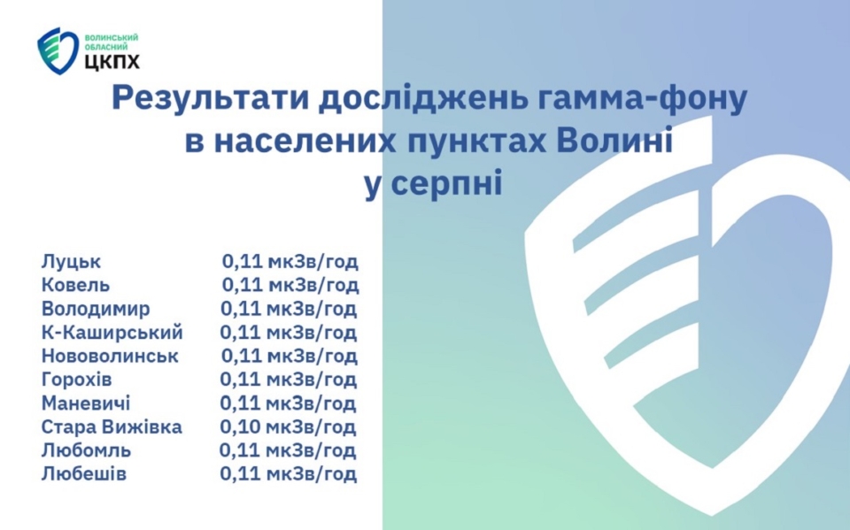 - Любешів – 0,11 мкЗв /год.