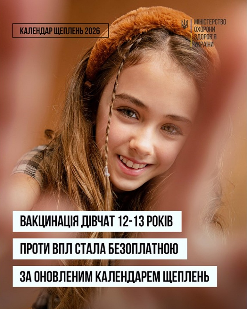 Відповідно до Національного календаря профілактичних щеплень, безоплатне однократне щеплення 9-валентною вакциною доступне для дівчат віком 12–13 років з початку 2026 року. Саме в цьому віці, до початку статевого життя, вакцинація забезпечує найвищий рівень захисту та запобігає захворюванню майбутньому.