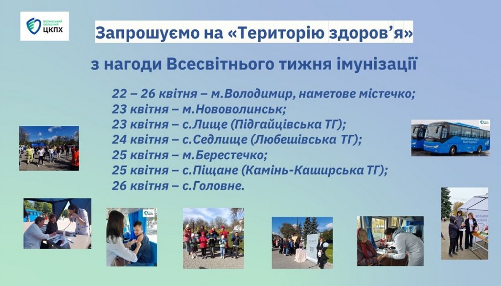 Центр контролю та профілактики хвороб запрошує всіх на «Територію здоров’я» до Всесвітнього тижня імунізації! Це чудова нагода з користю провести час, подбати про себе та своїх близьких.